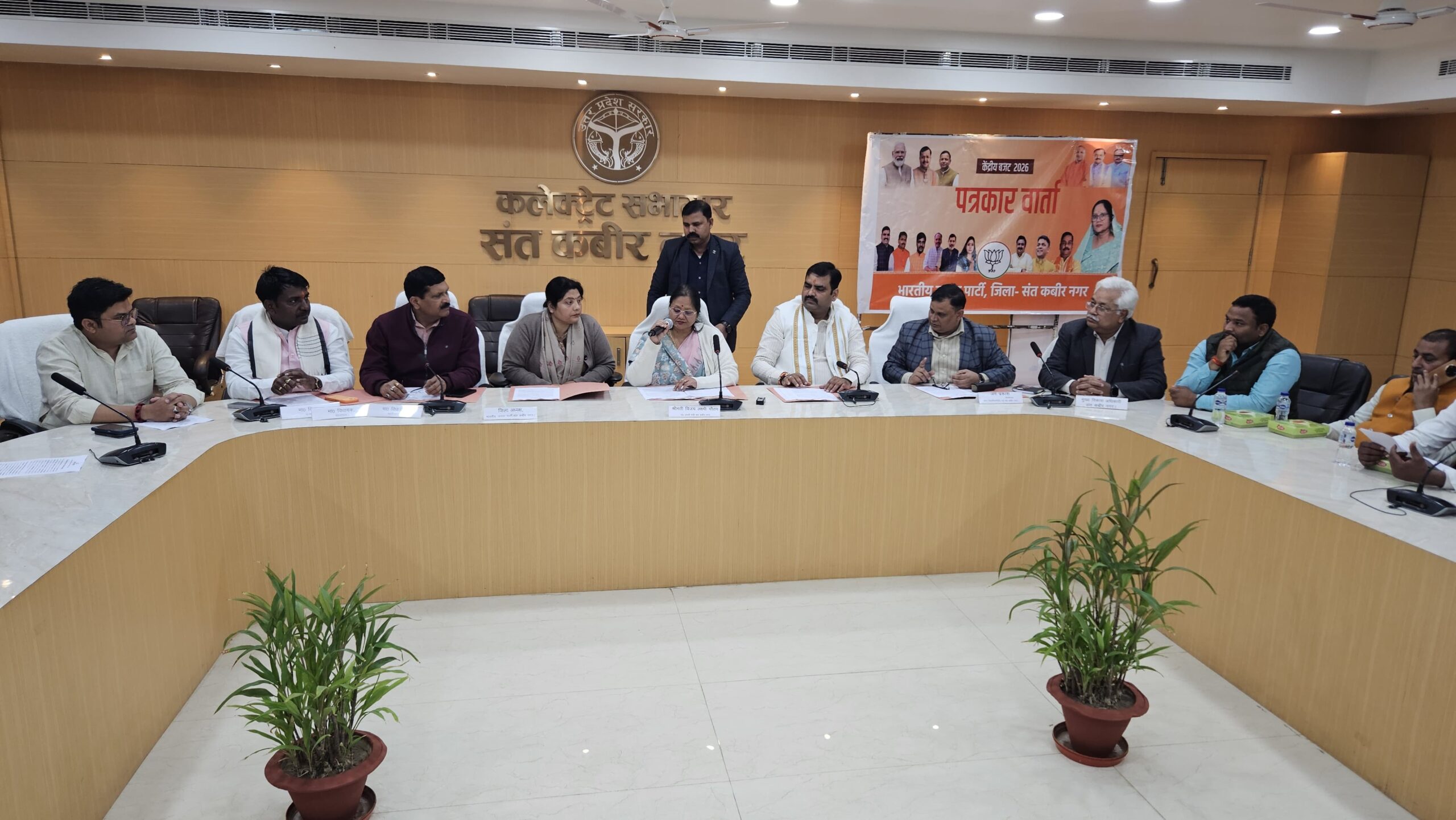 संत कबीर नगर राज्यमंत्री ग्राम्य विकास विभाग एवं समग्र ग्राम्य विकास, ग्रामीण अभियंत्रण विभाग, उ0प्र0 शासन एवं जनपद की प्रभारी मंत्री श्रीमती विजयलक्ष्मी गौतम जी द्वारा केंद्रीय बजट वित्त वर्ष 2026-27 पर जनपद के प्रिंट/इलेक्ट्रानिक मीडिया बंधुओं के साथ कलेक्ट्रेट सभागार में प्रेस-वार्ता की गई। इस अवसर पर जिलाध्यक्ष भाजपा श्रीमती नीतू सिंह जी, विधायक खलीलाबाद अंकुर राज तिवारी जी, मा0 विधायक मेहदावल अनिल कुमार त्रिपाठी जी, विधायक धनघटा गणेश चंद्र चौहान जी, एमएलसी प्रतिनिधि ई0 सुधांशु सिंह जी, पुलिस अधीक्षक संदीप कुमार मीना, अपर जिलाधिकारी (वित्त व राजस्व) जयप्रकाश व मुख्य विकास अधिकारी जयकेश त्रिपाठी उपस्थित रहे।