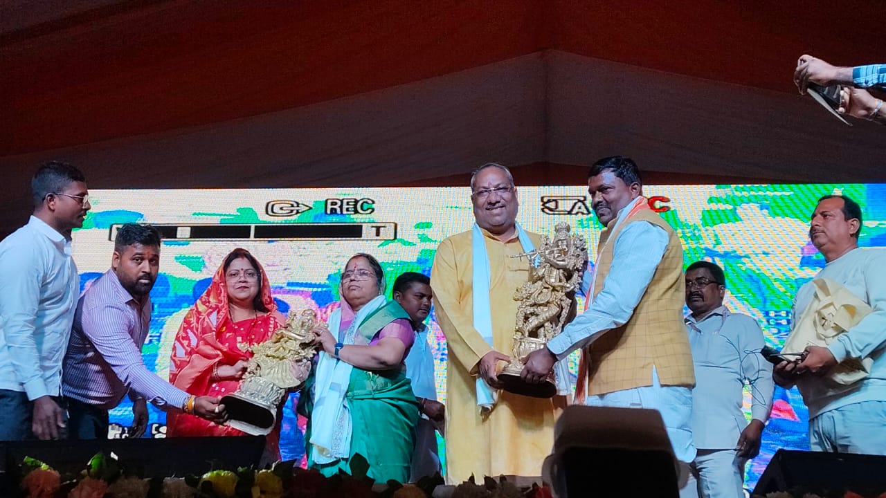 *”द्वाबा महोत्सव-2025″* के शुभारंभ अवसर पर नगर पंचायत अध्यक्ष हैंसर रिंकूमणि व अध्यक्ष प्रतिनिधि नीलमणि द्वारा मंत्री जी को भगवान श्री कृष्ण जी की प्रतिमा व अंगवस्त्र भेंट कर सम्मानित किया गया।