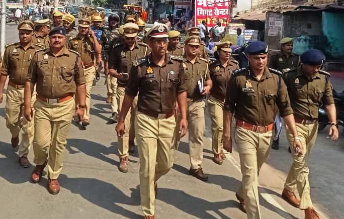 डीआईजी बस्ती द्वारा आगामी पर्व होली के दृष्टिगत कोतवाली बस्ती थाना क्षेत्र में भ्रमण/पैदल गश्त कर सुरक्षा/यातायात व्यवस्था का लिया गया जायजा