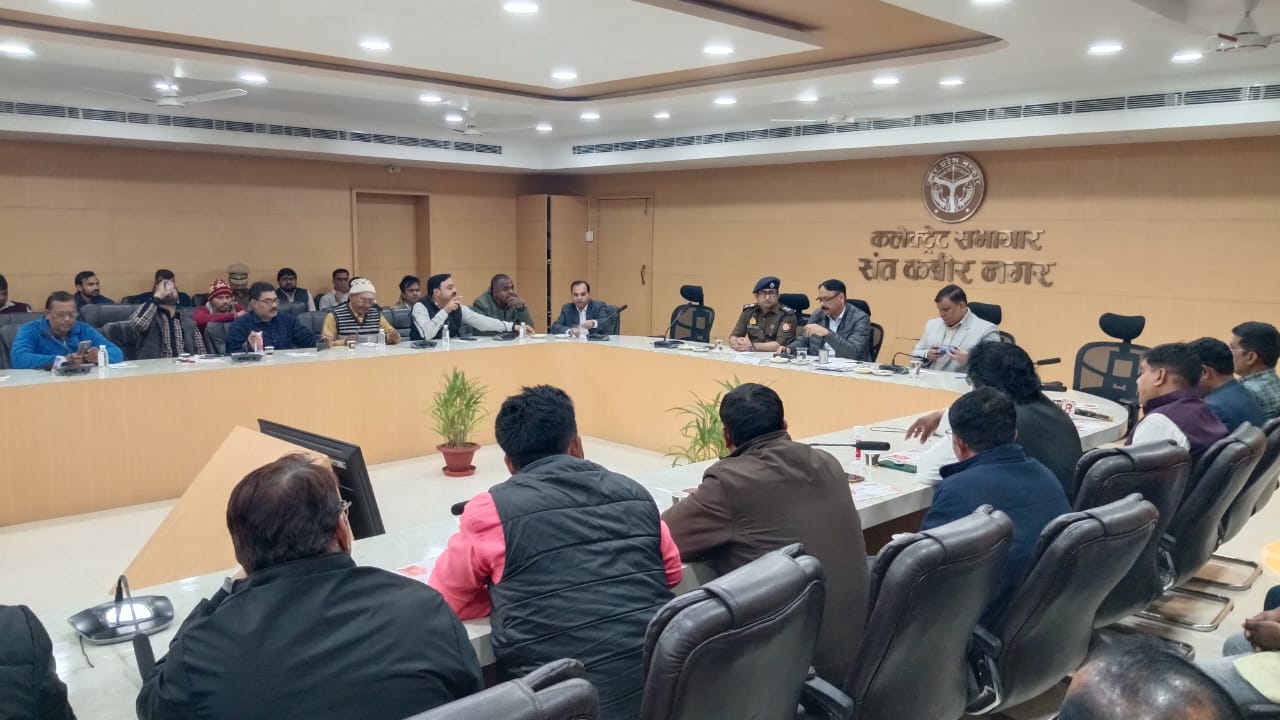 संत कबीर नगर जिलाधिकारी आलोक कुमार व पुलिस अधीक्षक संदीप कुमार मीना द्वारा दिनांक 28 जनवरी 2026 से 02 फरवरी 2026 तक आयोजित होने वाले कबीर मगहर महोत्सव-2026 के भव्य एवं सफल आयोजन के दृष्टिगत जनपद के प्रिन्ट/इलेक्ट्रानिक मीडिया बन्धुओं के साथ कलेक्ट्रेट सभागार में आयोजित प्रेसवार्ता के दौरान मगहर महोत्सव आयोजन के विभिन्न दिवसों में आयोजित होने वाले कार्यक्रमों एवं महोत्सव के दौरान सुरक्षा व्यवस्था के सुचारू संचालन आदि के संबंध में विस्तृत चर्चा की गयी। इस अवसर पर अपर जिलाधिकारी जय प्रकाश उपस्थित रहे।