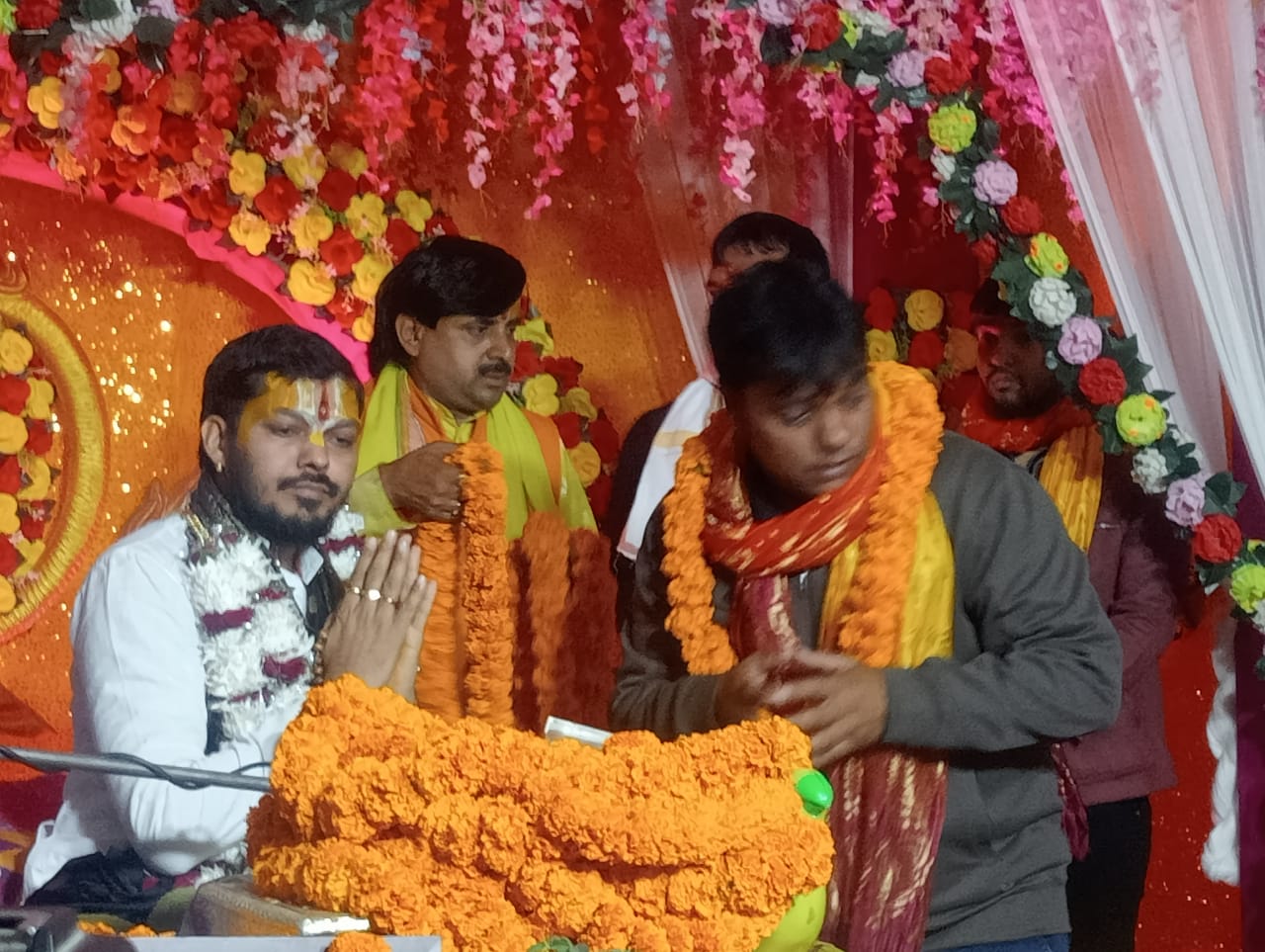 भिटहा स्थित “चतुर्वेदी विला” में चल रही श्रीमद्भागवत कथा के आखिरी दिन कथा व्यास सहित समूची टीम का अंग वस्त्र और आभूषण के साथ हुआ सम्मान