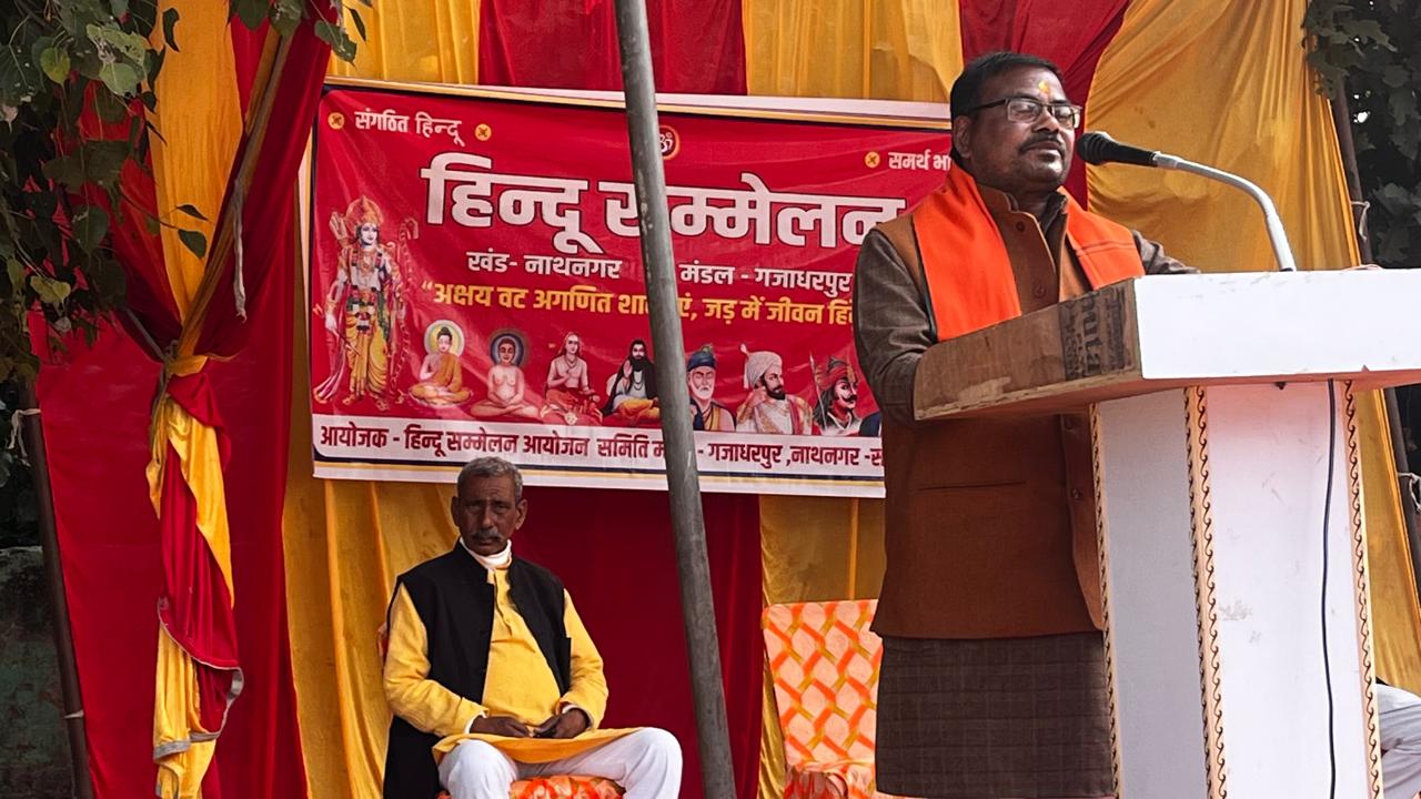 गजाधरपुर मंडल में विशाल हिंदू सम्मेलन का आयोजन किया गया कार्यक्रम की अध्यक्ष अध्यक्षता बार काउंसिल तहसील धनघटा के अध्यक्ष हनुमान प्रसाद चौधरी ने किया कार्यक्रम के विशिष्ट अतिथि वीरेंद्र त्रिपाठी रहे। सम्मेलन के मुख्य अतिथि राष्ट्रीय स्वयंसेवक संघ के प्रांत के सह सेवा प्रमुख श्रीमान नित्यानंद जी रहे।इस कार्यक्रम का संचालन राष्ट्रीय स्वयंसेवक संघ के सह विभाग संपर्क प्रमुख प्रवीण त्रिपाठी ने किया। इस सम्मेलन में उपस्थित प्रमुख लोगों में आलोक त्रिपाठी विरेन्द्र निषाद गजेन्द्र कुमार त्रिपाठी संतोष त्रिपाठी रमेश चंद्र त्रिपाठी प्रहलाद त्रिपाठी धर्म देव त्रिपाठी ओमप्रकाश त्रिपाठी राजपाल चौधरी पवन ओझा हेमंत चतुर्वेदी राजीव गुप्ता कृष्णमणि मिश्रा रामपाल चौधरी कमलदेव शर्मा एवं जिला पंचायत सदस्य रक्कू पाल एवं हजारों लोग की उपस्थिति रही।