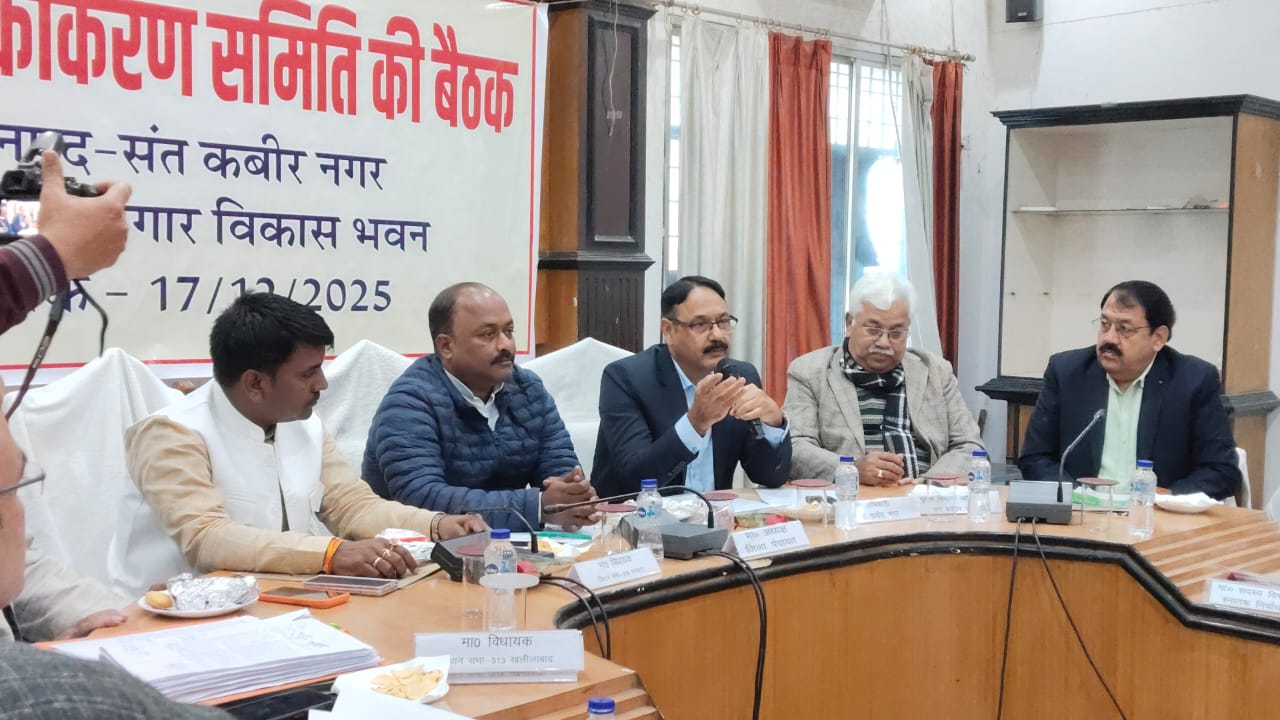 संत कबीर नगर जिलाधिकारी आलोक कुमार की अध्यक्षता में तामेश्वरनाथ धाम कारीडोर बनाए जाने के संबंध में प्रगति से संबंधित समीक्षा बैठक संबंधित अधिकारियों, स्थानीय लेखपाल व स्थानीय काश्तकारों के साथ कलेक्ट्रेट सभागार में आयोजित हुई। इस अवसर पर अपर जिलाधिकारी (वित्त व राजस्व) जयप्रकाश उपस्थित रहे।
